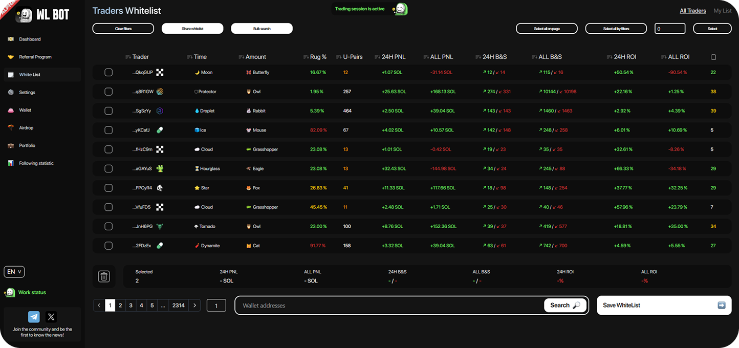 Data on each Solana trader